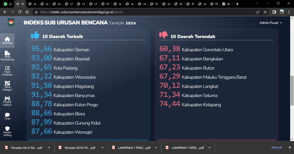 BPBD Kota Padang Masuk 3 Besar Indeks Penyelenggaraan Trantibumlinmas Sub Urusan Bencana Tahun 2024