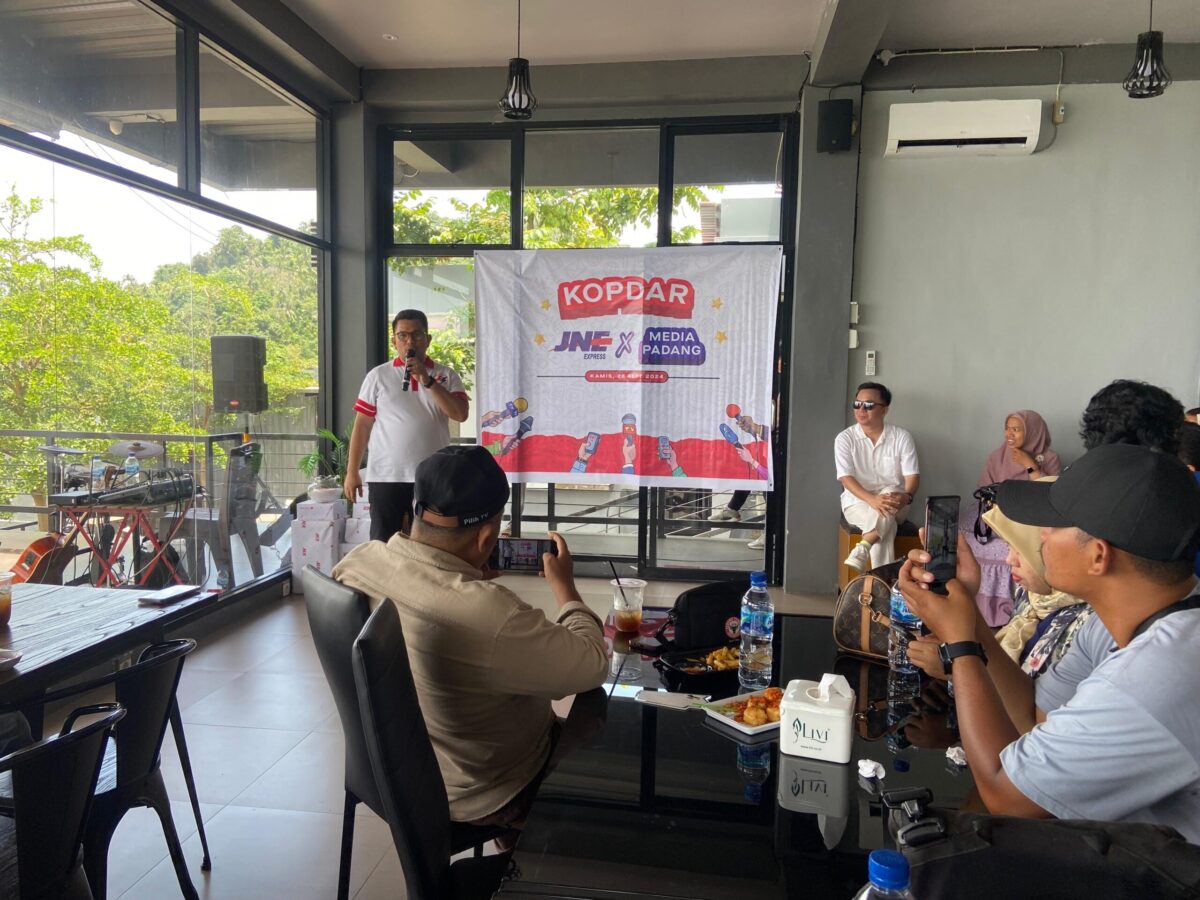 Ket. Foto : Head of Media Communication JNE, Kurnia Nugraha Taher saat kopdar bersama media di Padang. YESI