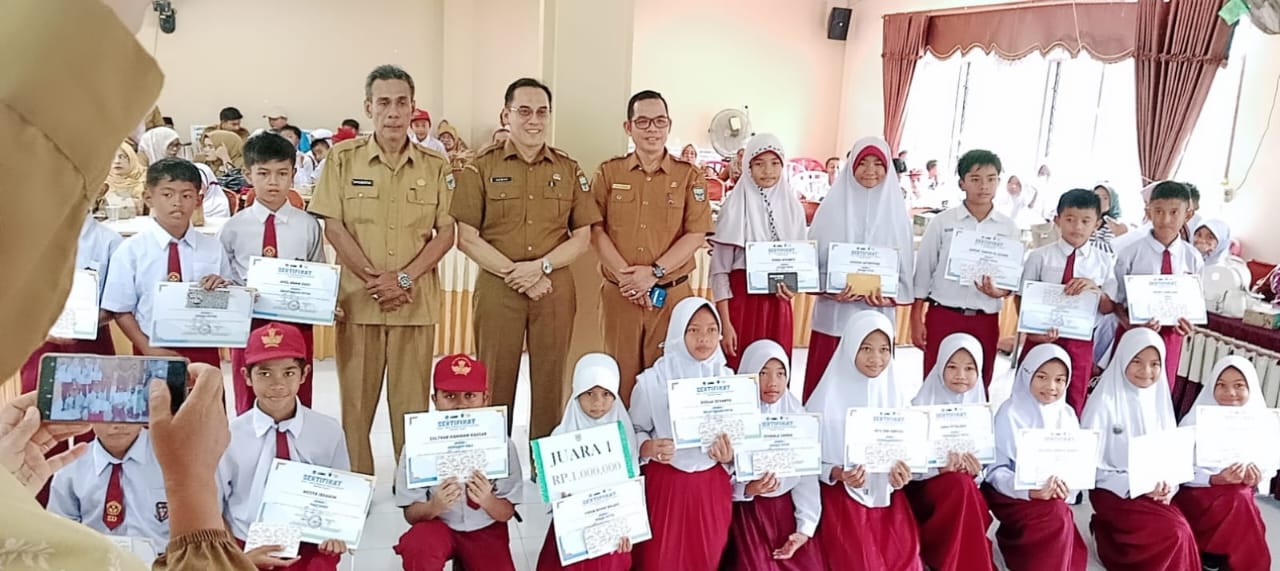 Foto : Penyerahan hadiah bagi pemenang siswa-siswi SD dalam perlombaan Olimpiade Olahraga Siswa Nasional (O2SN) dan Festival Lomba Seni Siswa Nasional (FL2N) se- Kabupaten Padang Pariaman di aula Dinas Pendidikan dan Kebudayaan kabupaten setempat, Senin (7/10). IST