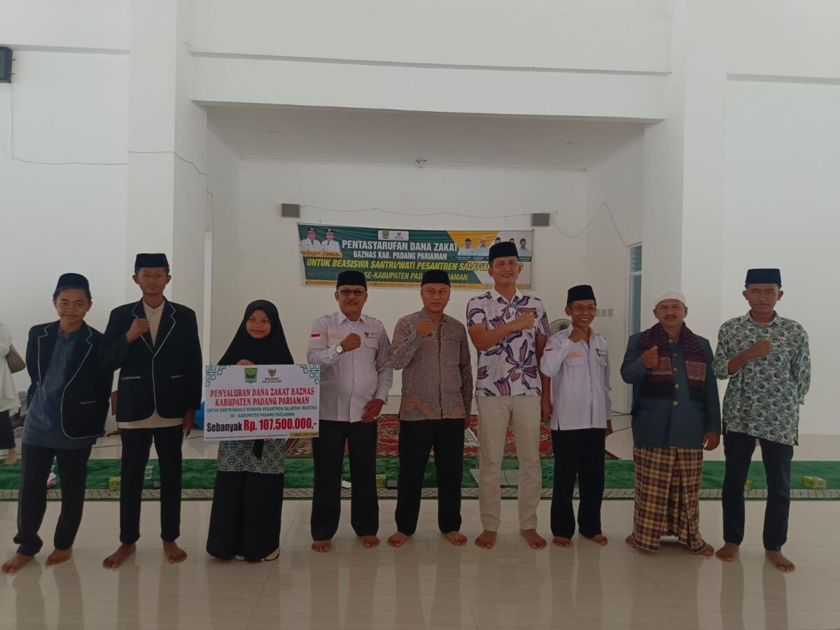PADANG PARIAMAN, HARIANHALUAN.ID – Baznas Padang Pariaman bersama menyerahkan secara simbolis Bantuan Biaya Pendidikan untuk Santriwan/i Pondok Pesantren Salafiah Wustho Se – Kabupaten Padang Pariaman Senilai Rp107.500.000 di Mesjid Komplek Kantor Bupati Padang Pariaman, Parik Malintang, pekan lalu.