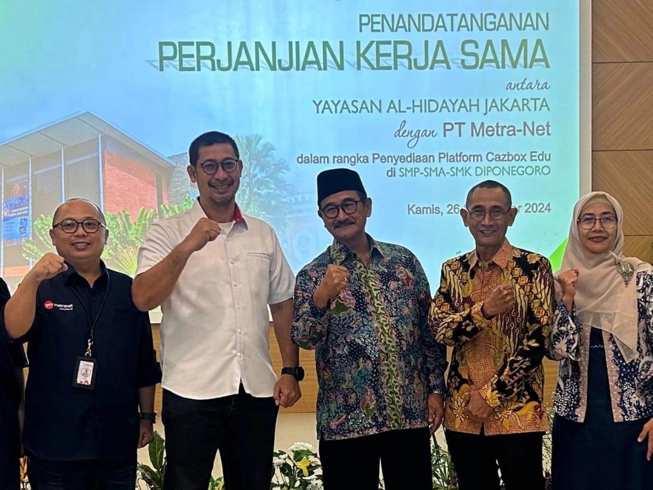 JAKARTA, HARIANHALUAN.ID — Produk digital unggulan dari anak usaha PT Telkom Indonesia (Persero) Tbk (Telkom), Cazbox by Metranet terus memperlihatkan eksistensinya dalam mendukung transformasi digital di sektor pendidikan Indonesia. Hal ini ditunjukan dengan penandatanganan perjanjian kerja sama dengan Yayasan Al Hidayah untuk menghadirkan solusi digital yang dirancang khusus guna menghadirkan efektivitas dan efisiensi proses belajar-mengajar bagi sekolah-sekolah pada berbagai tingkatan di bawah naungan yayasan tersebut (SMP, SMA, dan SMK Diponegoro).