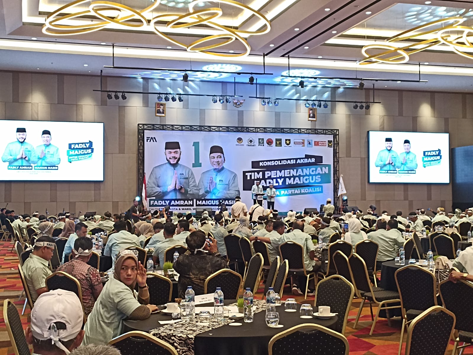 PADANG, HARIANHALUAN.ID- Tim pemenangan calon wali kota dan wakil wali kota padang Fadly Amran dan Maigus Nasir mulai melakukan koordinasi dan konsolidasi akbar, di salah satu hotel di Kota Padang, Minggu (20/10/2024).