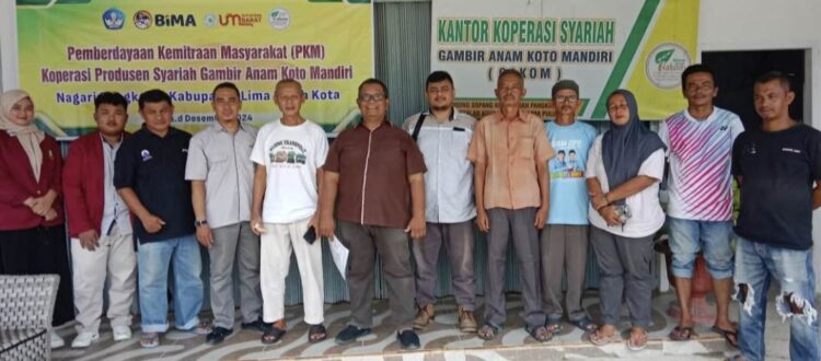 PADANG, HARIANHALUAN.ID- Guna meningkatkan hilirisasi produk gambir berupa katekin dan tanin gambir, dosen dan mahasiswa Universitas Muhammadiyah Sumatera Barat (UM Sumbar) lakukan pendampingan dan pelatihan pada Koperasi Produsen Syariah Gambir Anam Koto Mandiri.