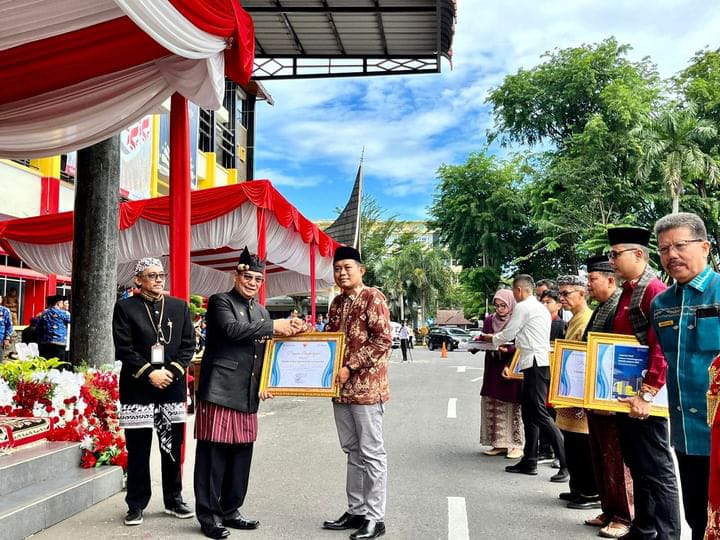 Penyerahan Penghargaan diserahkan oleh Plh.Sekda Provinsi, Senin (28/10) setelah pelaksanaan Upacara Peringatan Sumpah Pemuda ke-96 di halaman Kantor Gubernur Sumatera Barat.