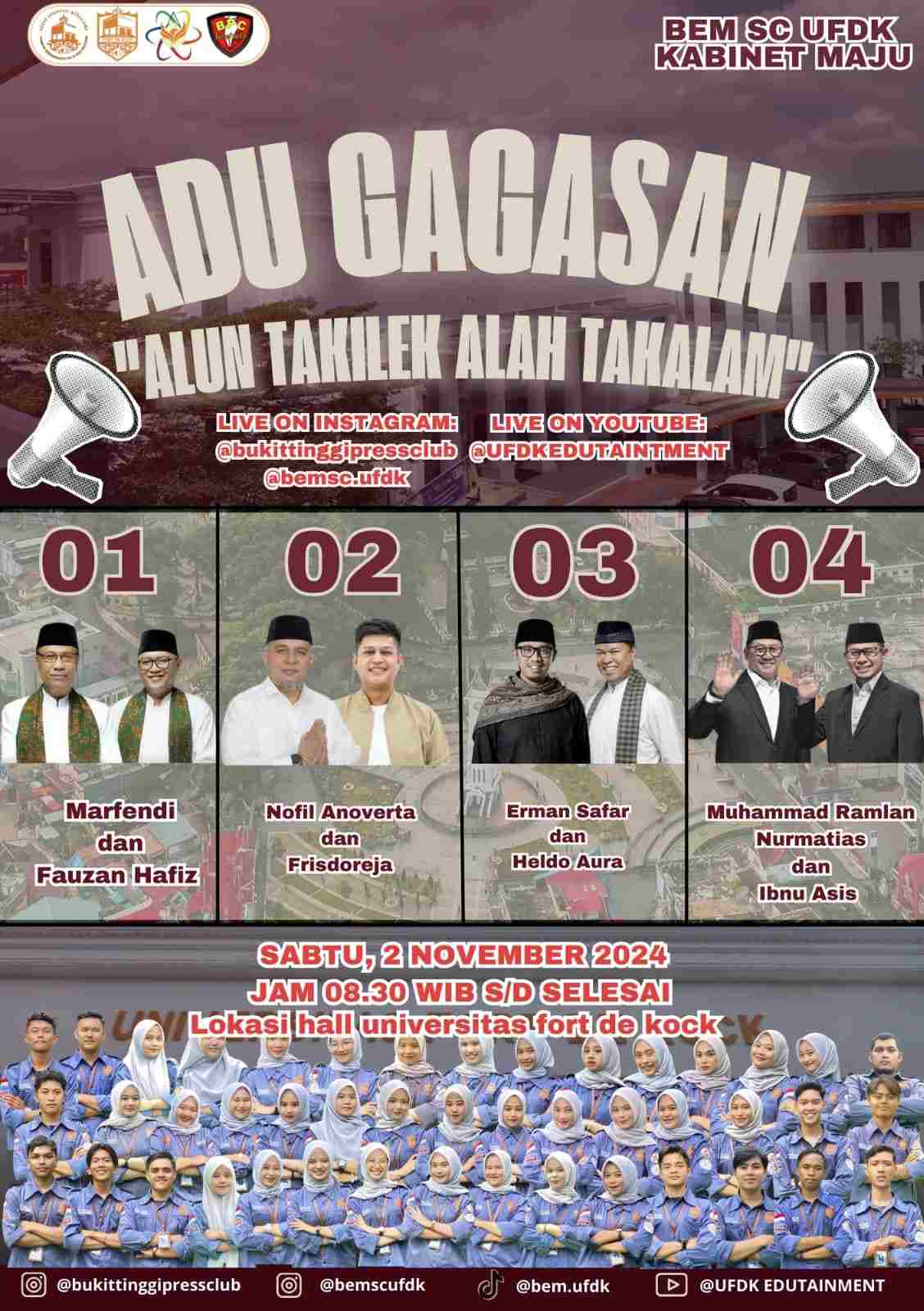 Kegiatan ini mengangkat tema “alun takilek alah takalam (membaca tanda tanda perubahan)”. Ini merupakan diskusi perdana di Bukittinggi yang dilakukan perguruan tinggi yang melibatkan peserta Pilkada 2024.