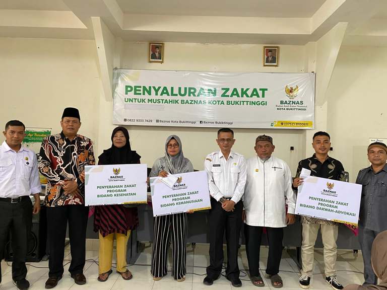 BUKITTINGGI, HARIANHALUAN.ID – Sebanyak 137 mustahik kembali menerima bantuan dari Badan Amil Zakat Nasional (Baznas) Kota Bukittinggi kembali menyalurkan zakat kepada para mustahik (yang berhak) sebesar Rp92,5 juta, Rabu (30/10).