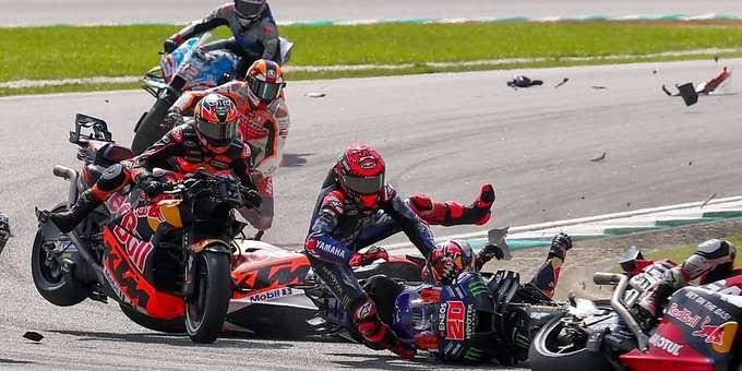 ban belakang Quartararo, yang akhirnya terpental dan menabrak Binder. Ketiga pembalap itu akhirnya jatuh.