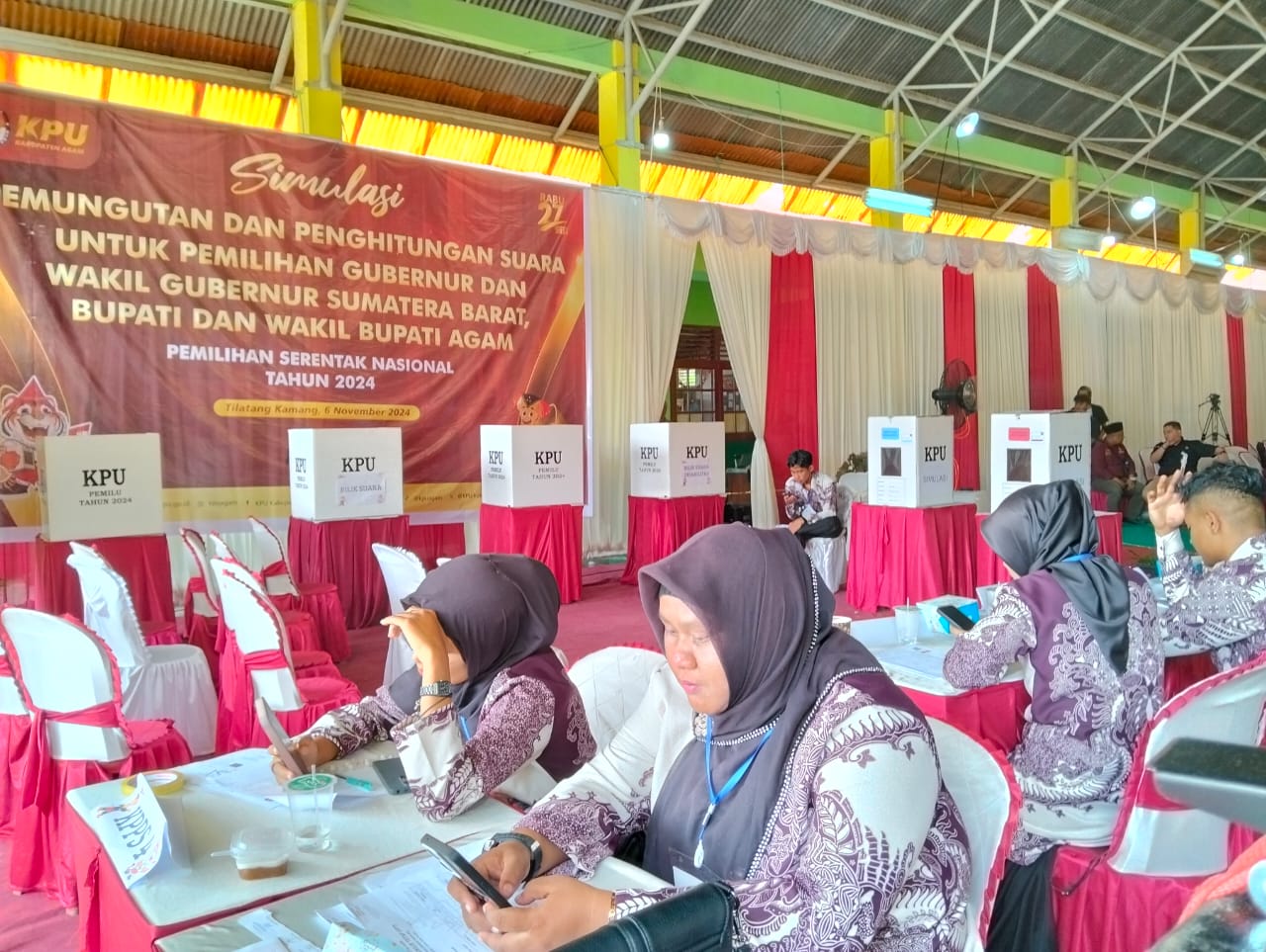 AGAM, HARIANHALUAN.ID – Komisi Pemilihan Umum (KPU) Kabupaten Agam berkomitmen menyukseskan penyelenggaraan Pilkada 2024 tanpa masalah. Sebagai wujud komitmen tersebut, KPU Agam menggelar Simulasi Pemungutan dan Perhitungan Suara, Rabu (6/11) di Kecamatan Tilatang Kamang.