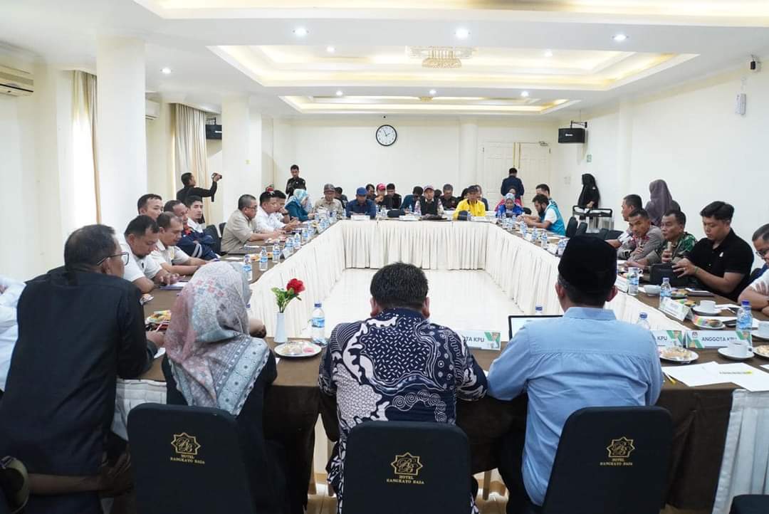 PADANG PANJANG, HARIANHALUAN.ID– Jelang pelaksanaan Debat Kedua Pasangan Calon Wali Kota dan Wakil Wali Kota (Cawako-Cawawako) Padang Panjang, Komisi Pemilihan Umum (KPU) gelar Rapat Koordinasi (Rakor) di Aula Hotel Rangkayo Basa, Rabu (6/11/2024).