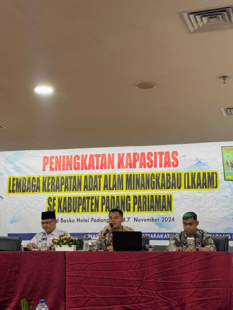 Kantor Pertanahan Kabupaten Padang Pariaman diundang sebagai narasumber dalam kegiatan peningkatan kapasitas Lembaga Kerapatan Adat Alam Minang Kabau (LKAAM) se-Kabupaten Padang Pariaman.