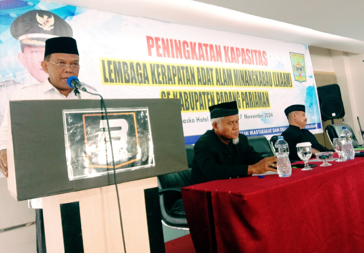 PADANG PARIAMAN, HARIANHALUAN.ID – Dinas Pemberdayaan Masyarakat dan Desa (DPMD) Kabupaten Padang Pariaman gelar kegiatan Peningkatan Kapasitas Ninik Mamak Lembaga Kerapatan Adat Alam Minangkabau (LKAAM) yang bertempat di salah satu hotel di Kota Padang, pada Rabu (6/11) dan Kamis (7/11).