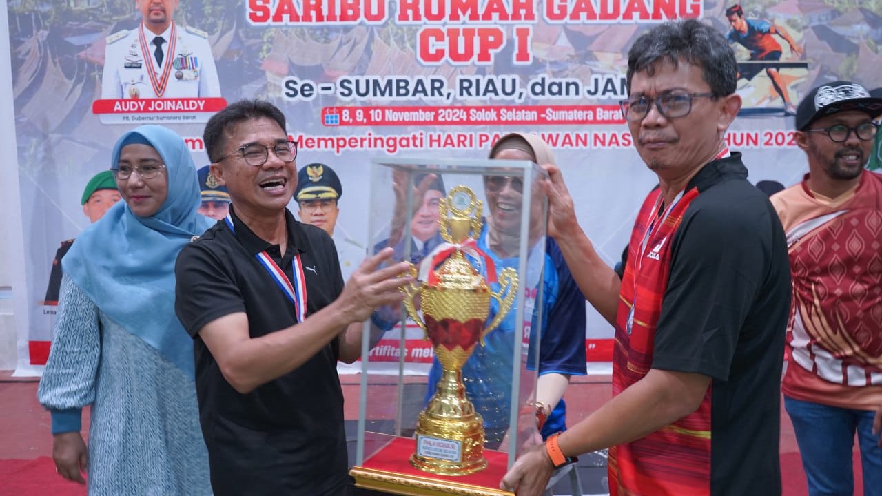 SOLOK SELATAN, HARIANHALUAN.ID – Pjs Bupati Solok Selatan Adib Alfikri berjaya dengan menjadi pemenang pertama dalam Turnamen Tenis Meja se-Sumbar, Riau dan Jambi pada event Saribu Rumah Gadang (SRG) Cup I di Solok Selatan.