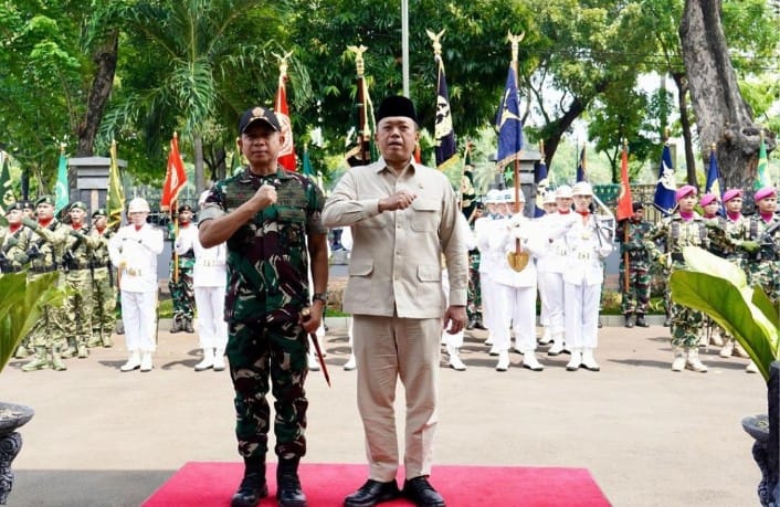 Menteri Agraria dan Tata Ruang/Kepala Badan Pertanahan Nasional (ATR/BPN), Nusron Wahid mengunjungi Gedung Subden Markas Besar Tentara Nasional Indonesia (Mabes TNI), Jakarta, Senin (11/11/2024).