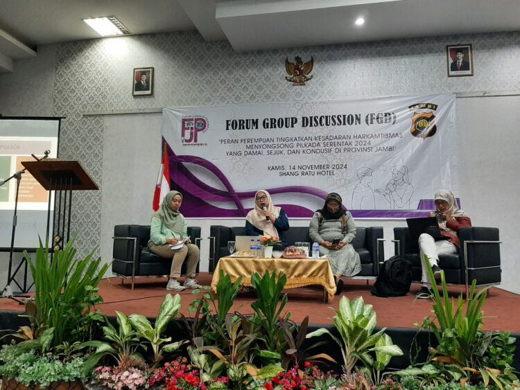 JAMBI, HARIANHALUAN.ID – Dalam upaya menciptakan suasana damai dan kondusif menjelang Pilkada Serentak 2024, Polda Jambi bekerja sama dengan Forum Jurnalis Perempuan Indonesia (FJPI) Jambi menggelar Forum Group Diskusi (FGD) bertajuk “Peran Perempuan Tingkatkan Kesadaran Harkamtibnas Menyongsong Pilkada Serentak 2024 yang Damai, Sejuk, dan Kondusif di Provinsi Jambi.”