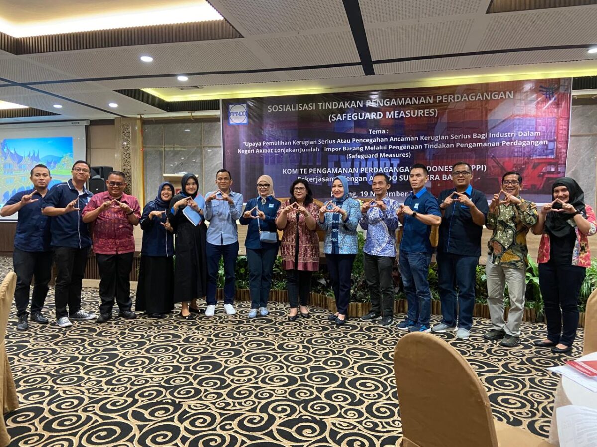 HARIANHALUAN.ID – Komite Pengamanan Perdagangan Indonesia (KPPI) bekerjasama dengan Asosiasi Pengusaha Indonesia (APINDO) Sumbar dalam mengadakan sosialisasi tindakan pengamanan perdagangan (safeguard measures), bertempat di Pangeran Beach Hotel, Selasa (19/11/2024).