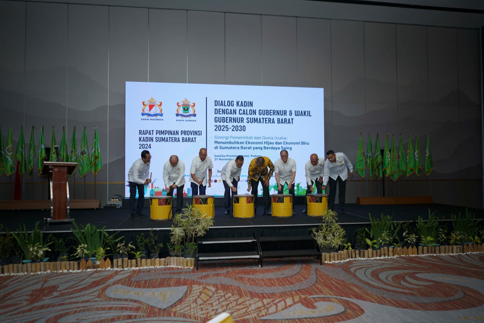 HARIANHALUAN.ID – Kamar Dagang dan Industri (Kadin) Sumatra Barat menggelar dialog dengan pasangan calon gubernur dan wakil gubernur Sumbar periode 2025-2030, guna menyamakan persepsi dan sinergisitas pemerintah dengan dunia usaha untuk mengoptimalkan pertumbuhan ekonomi Sumbar.