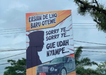 PADANG, HARIANHALUAN.ID - Baliho bergambar siluet yang diduga wajah Gubernur Sumbar Mahyeldi dengan kata-kata "Kasian De Lho Baru Otewe, Sorry ...