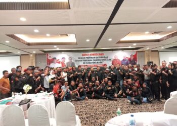 Teks foto: Foto bersama pengurus DPD GRIB Jaya Sumbar dan semua pengurus DPC usai rapat konsolidasi, Minggu (9/2) di Pangerans ...